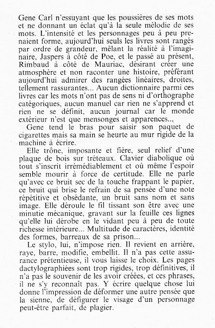 Obsession blanche, le dernier livre que Valérie Valère publiera de son vivant en avril 1981, relate donc le calvaire intérieur d’un jeune écrivain n’ayant plus d’inspiration et dans l’impossibilité d’écrire. Peut-être joue-t-elle trop avec le feu via ce thème qui deviendra bientôt une réalité pour elle. Mais pour l’heure, elle passe son bac, atteint la majorité légale, et peut quitter sa mère pour acheter un studio rue de Buci grâce à ses droits d’auteur (je fis il y a une dizaine d’années un petit pèlerinage dans ce quartier, à la recherche de quelque chose qu’évidemment je ne pu trouver. Je suppose d’ailleurs ne pas être le seul à avoir fait cette démarche affective et mélancolique).